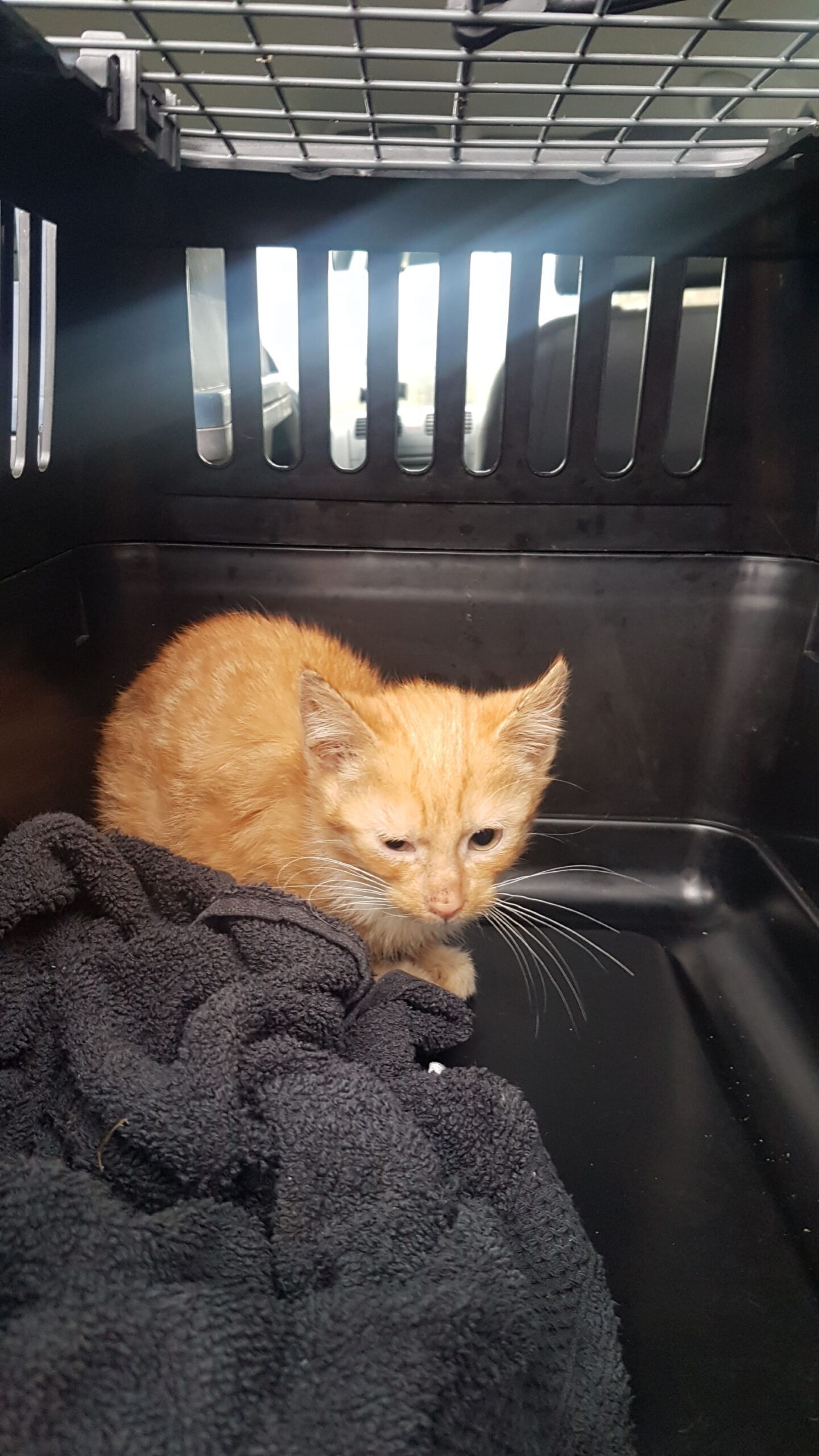 Mitten in diesem Einsatz wurde ein Wurf Kitten geboren – nicht im Garten selbst, sondern auf der Pflegestelle, wenige Tage nachdem wir die trächtige Mutter gesichert hatten. Die Mutter war bereits krank, Dauerdurchfall, und die Kitten trugen die Folgen von Geburt an. Eines der Jungtiere hatte so stark verklebte Augen, dass wir anfangs dachten, es hätte gar keine. Erst nach mehreren Tierarztbesuchen stellte sich heraus: Die Augen waren da, sie mussten nur freigelegt werden. Wir haben das Kitten Hope genannt.
