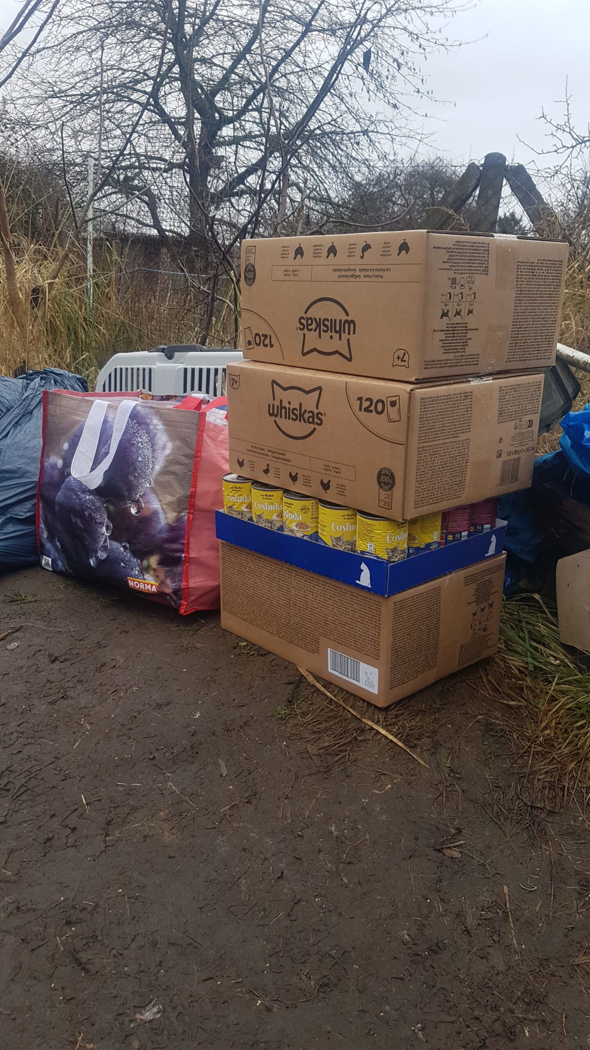 Viele der Katzen waren schwer krank – Katzenschnupfen, Giardien, Dauerdurchfall. Eine Unterbringung auf unseren eigenen Pflegestellen war deshalb nicht möglich: Wir haben keine Quarantänestation. Ohne die enge Zusammenarbeit mit dem Katzenparadies Neustrelitz und dem dortigen Tierarzt wären wir schon in den ersten Wochen an unsere Grenzen gestoßen. Dutzende Kastrationen, Behandlungen, Nachsorge – das alles läuft über Spenden. Jeder Euro zählt.