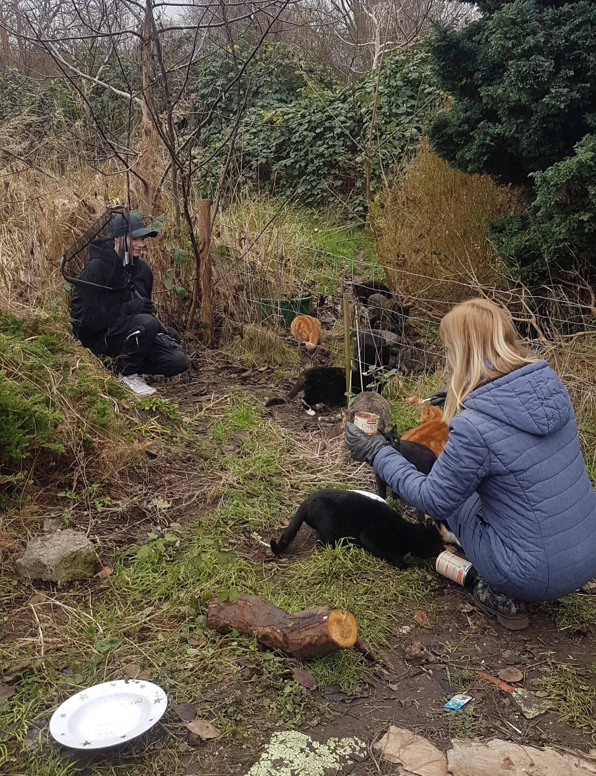 Mit voll beladenen Autos machten wir uns erneut auf den Weg zu der obdachlosen Frau und ihren Katzen. An Bord: das Nötigste an Kleidung und vor allem dringend benötigtes Katzenfutter.