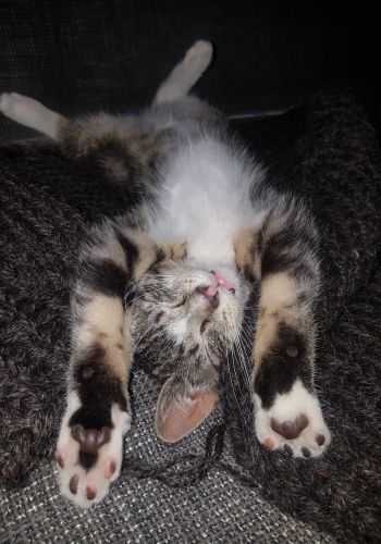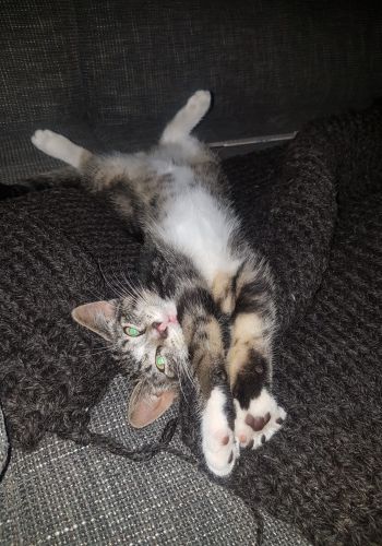 Purzel ist das Ebenbild seiner Mutter Miezi – die Fellfarbe, die Kopfform, dieser tiefe, durchdringende Blick, der mehr sagt als tausend Worte. Er schenkte uns schnell sein Vertrauen, spielte ausgelassen mit den Geschwistern und war einer der Ersten, die sich ins Haus trauten. Immer an seiner Seite: seine kleine Schwester, die ihm nicht nur äußerlich glich, sondern auch in ihrem Wesen.